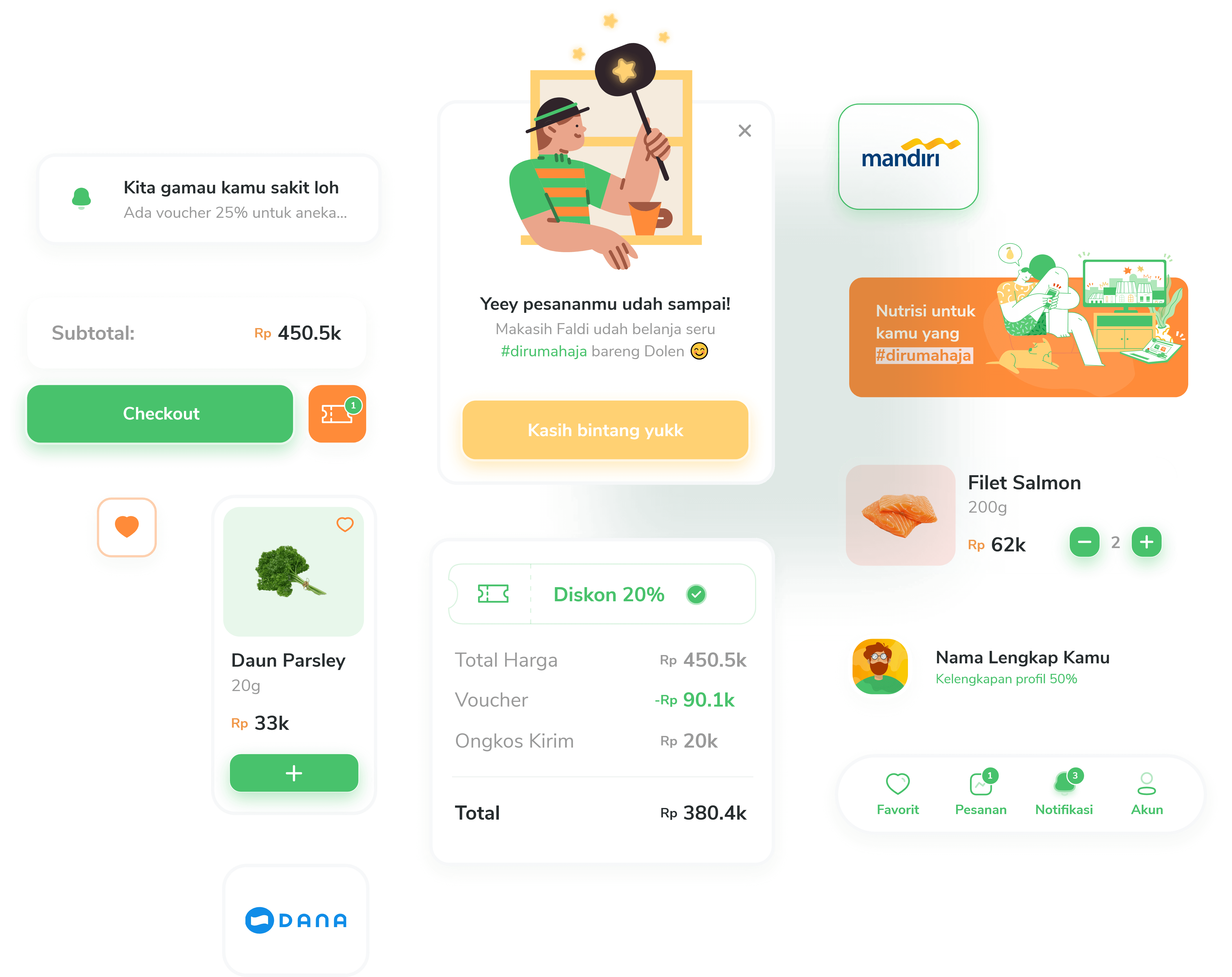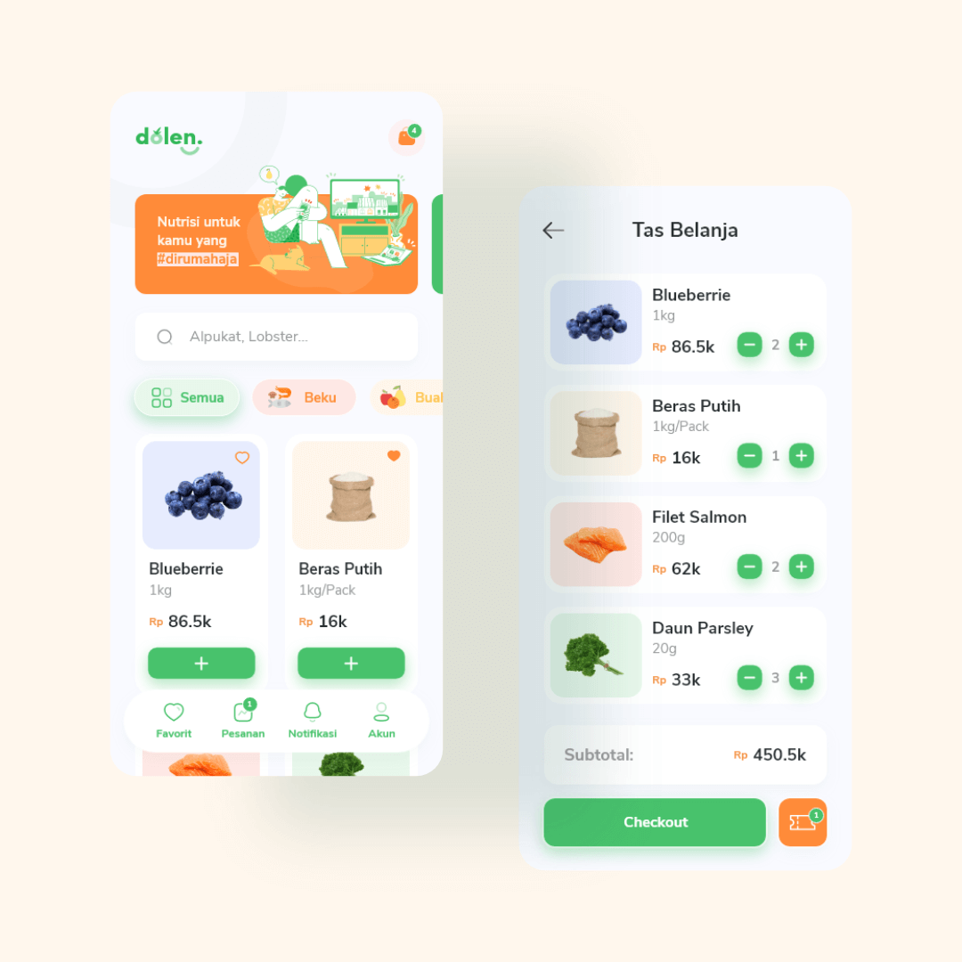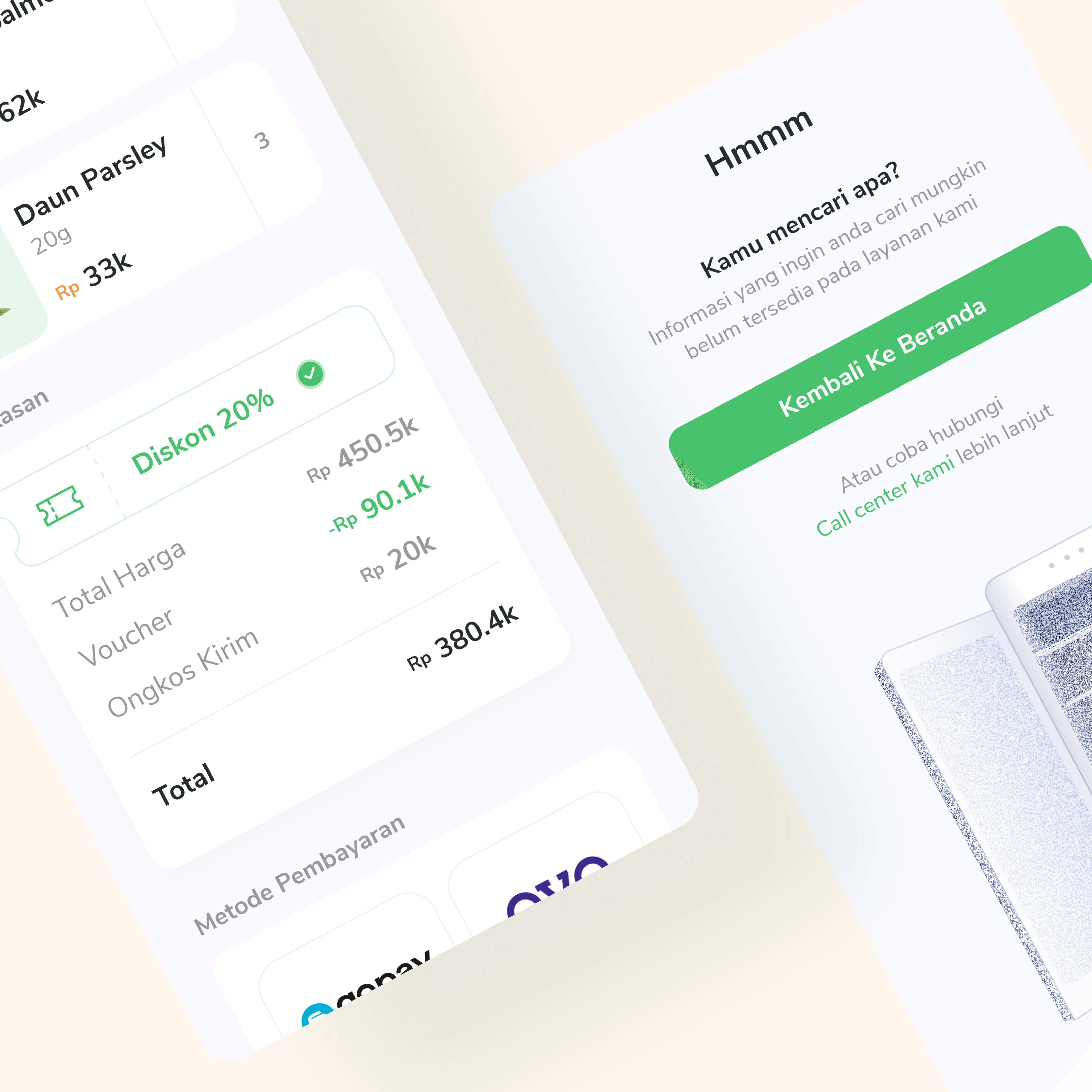 From button shadow, discount voucher, text field border, until product card color, our UI designer created a high quality interface for each component to achieve the best visual for an online grocery store. Every component have a clean atmosphere, look, and feel for make the whole app more harmonious and emotionally connected.