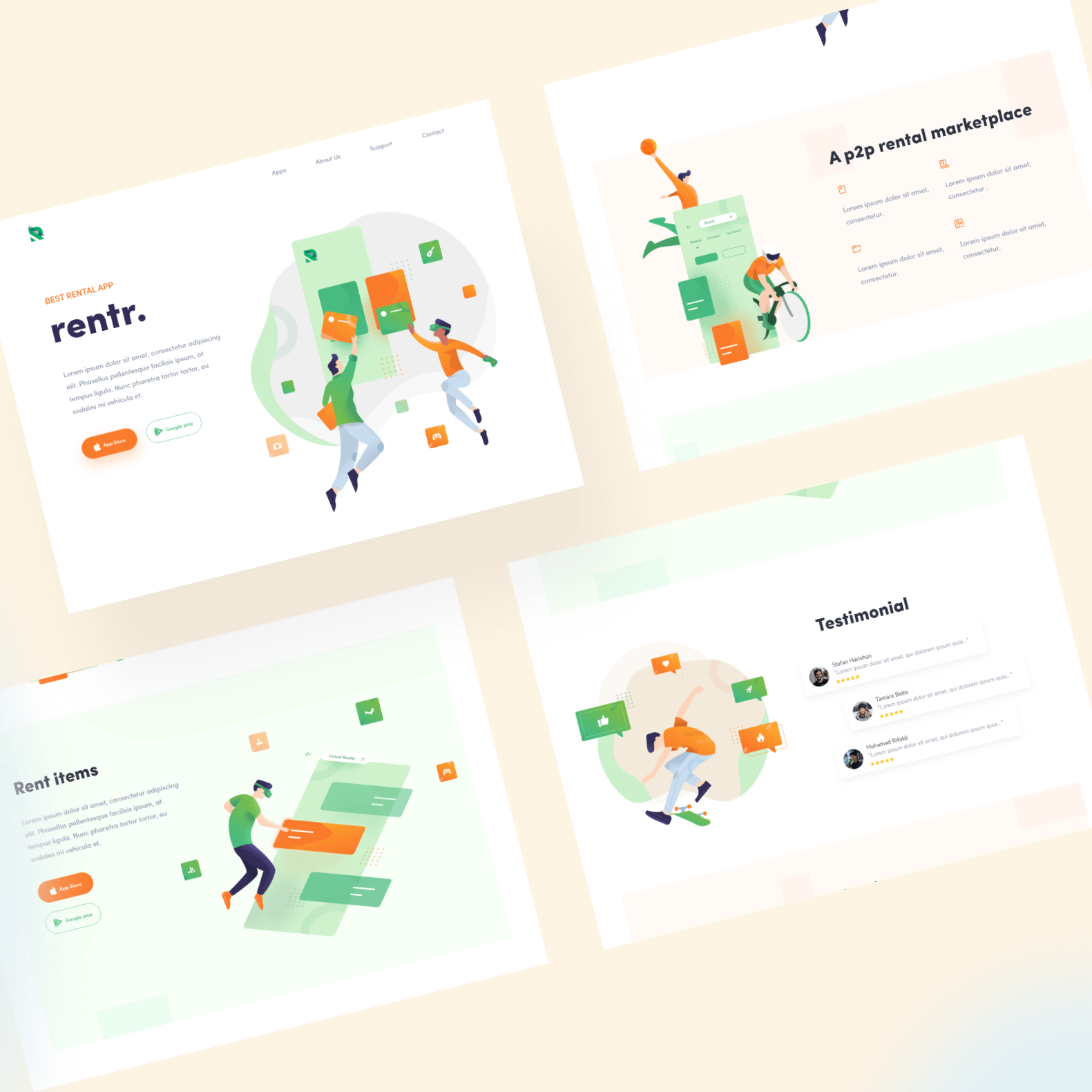 Rentr is a rental marketplace that allows user to rent and list various goods in one application. For this case, our UIUX team worked to find the best experience for both renter and rental owner, so renter can be renting any goods, and rental owner can run any rental store easily without worrying they goods have damaged. We designed retr with clean interface and playful illustration that can make user feel at home for a long time in the application. For the rentr landing page, our team doing an illustration animation that represent all the product feature.